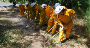 Training support to other agencies and government departments continues to grow. CFS has provided training in the areas of leadership, compartment fire behaviour and compressed air breathing apparatus. There is an increasing degree of cross training and support between CFS and SAPOL and both agencies continue to progress training associated with the merging demands of Chemical, Biological and radiation (CBR) and anti-terrorist training. CFS has now employed additional Rural trainers, to assist in the delivery of Basic Firefighter 1, Suppress Wildfire, and other rural orientated training courses. Portions of this page from the CFS Annual Report 2003-2004. Photographs by CFS Promotions Unit and Bill Corcoran, Naracoorte |